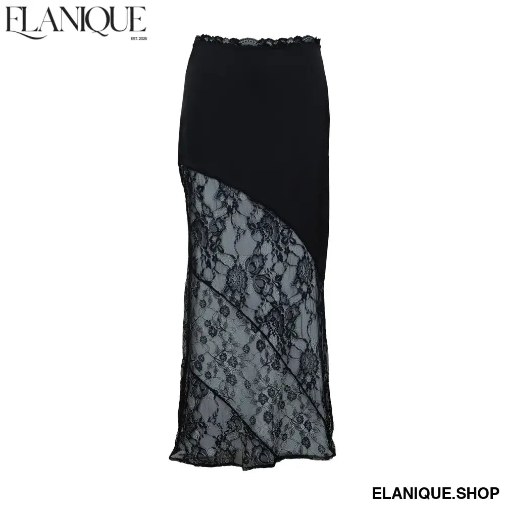 Women's Summer Satin Lace Patchwork Long Skirts | Mid Waist Solid
