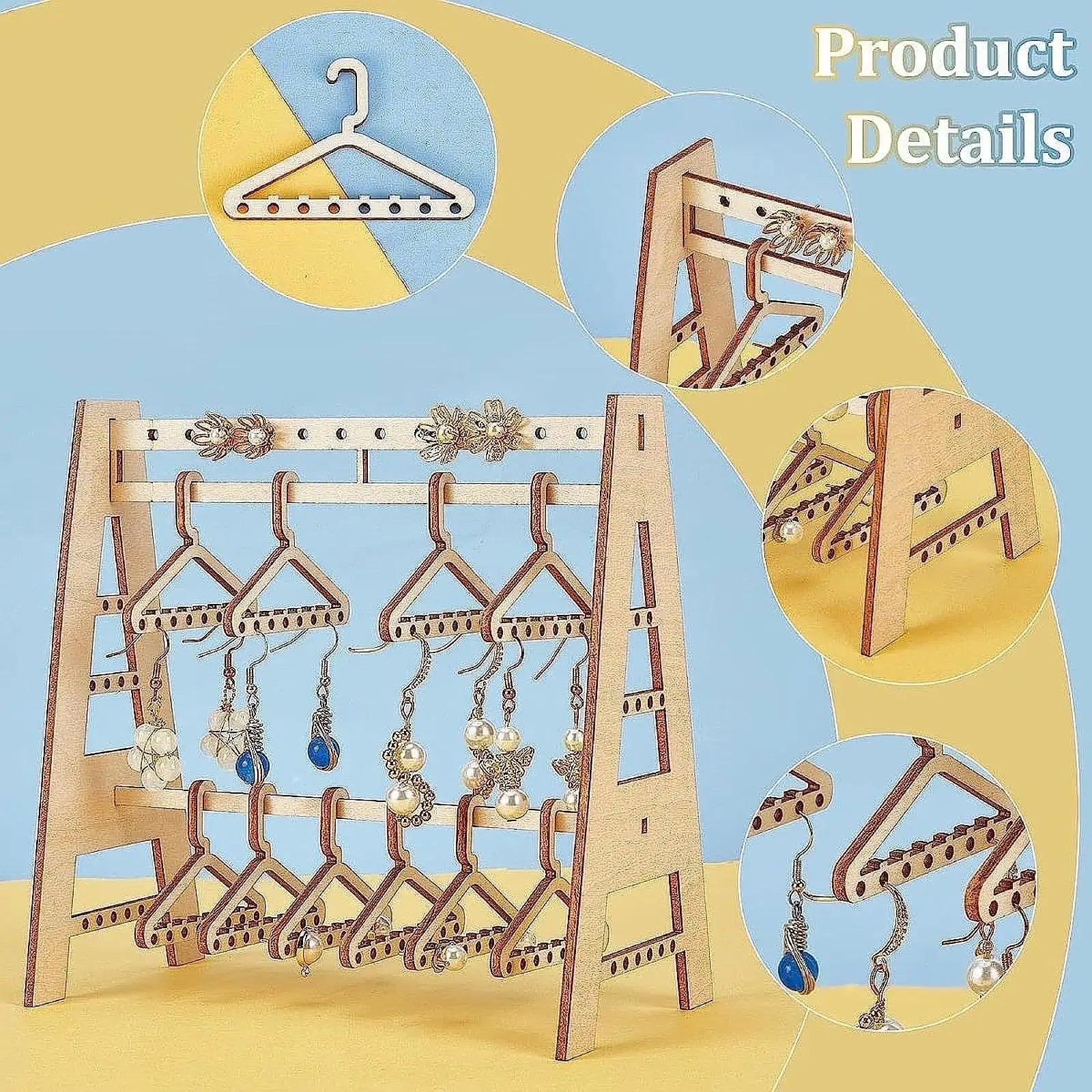 Earring Display Stand, Jewelry Organizer, Ear Stud Stand, Wood Mini Coat Hanger Rack Earring Holder for Retail Store Tabletop - Elanique