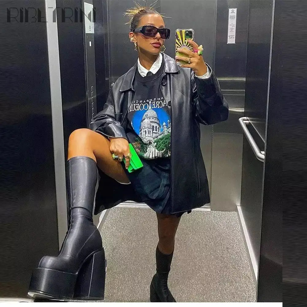 Boots For Woman Knee Shoes On Platform Gothic High Heels Punk Style New Rock Autumn Winter Chunky Pumps Plus Size Women Clothing