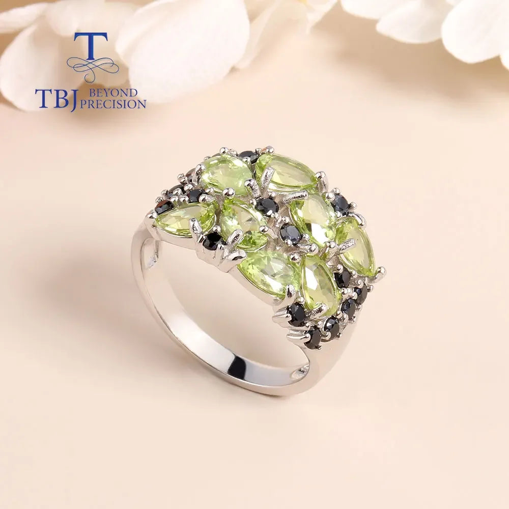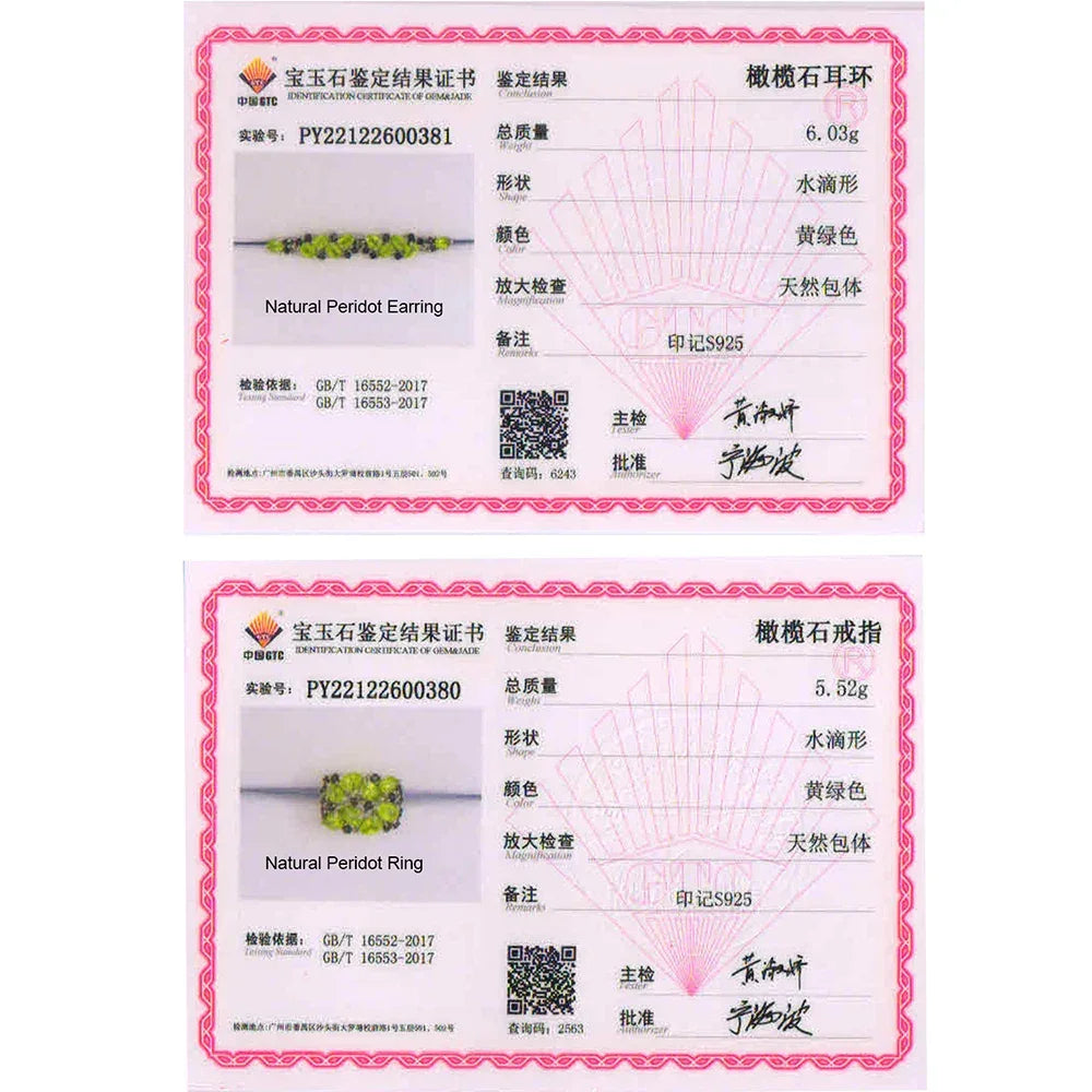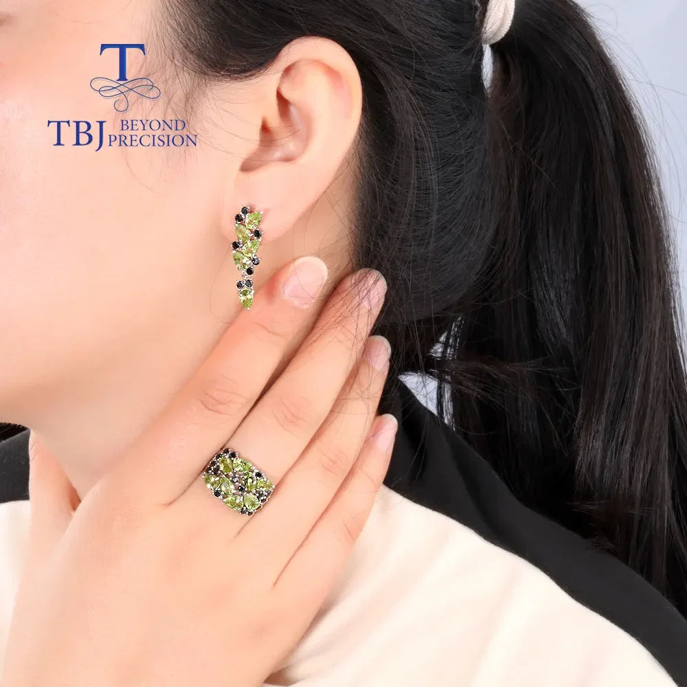 Fashion Peridot Jewelry set natural Gemstone Earring Ring 925 steling siver fine jewelry for women nice gift