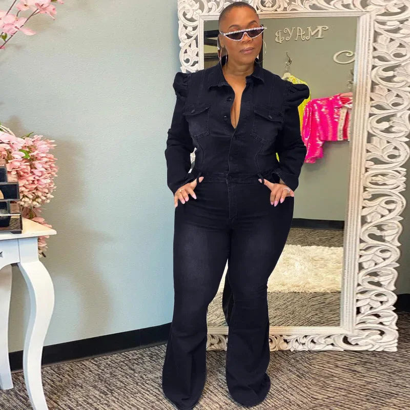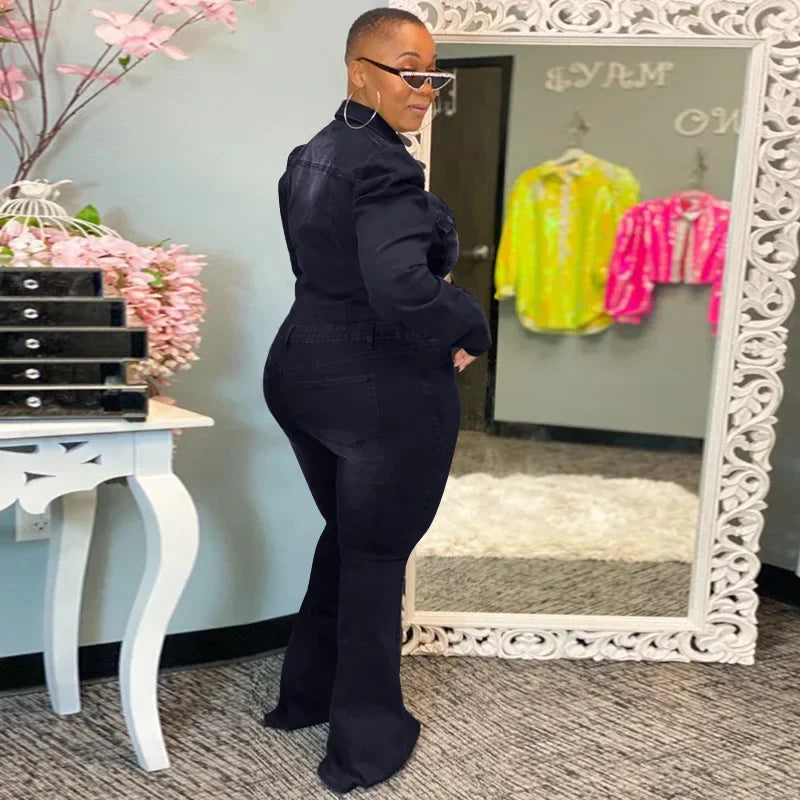 Full Length Overalls Women Jeans Bleached Washed Denim Mid Waist Jumpsuits Single Breasted Sashes Spliced Vintage Casual