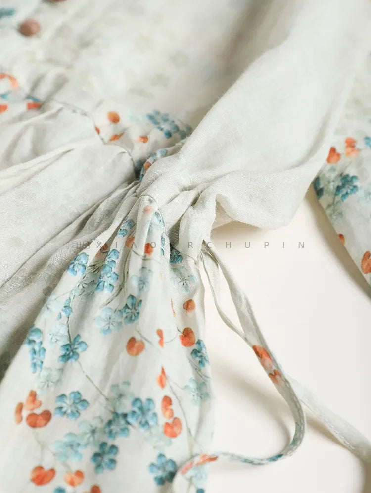 Summer Dress Women 2025 Long Print Elegant Clothing Vintage Elastic Waist Korean Beach Style V-Neck Fashion Robe Ropa De Mujer